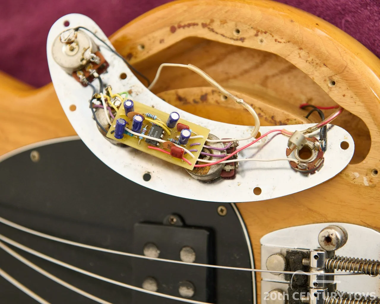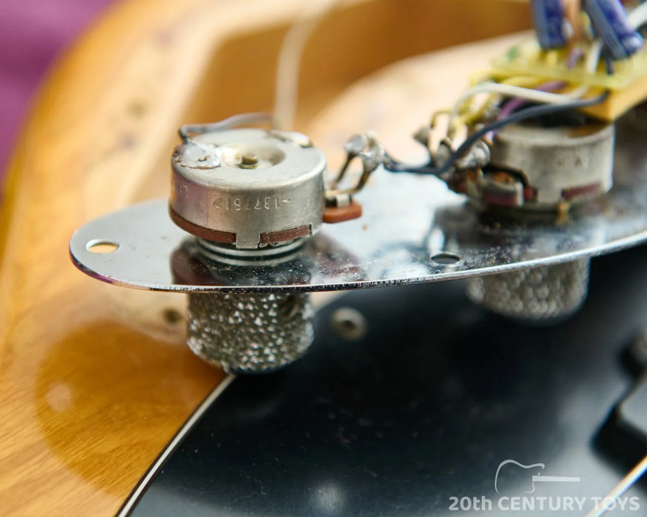 Tonally, this bass delivers exactly what you’d hope for — tight, piano-like lows, a punchy midrange, and that iconic active bite that cuts effortlessly through a mix. The original epoxy sealed pre amp circuit has been replaced with a correct spec unsealed version, which is quite a common mod as the original sealed pre amps could be prone to malfunction. The original pre amp is included in the case but is untested. The rest of the electronics are original.