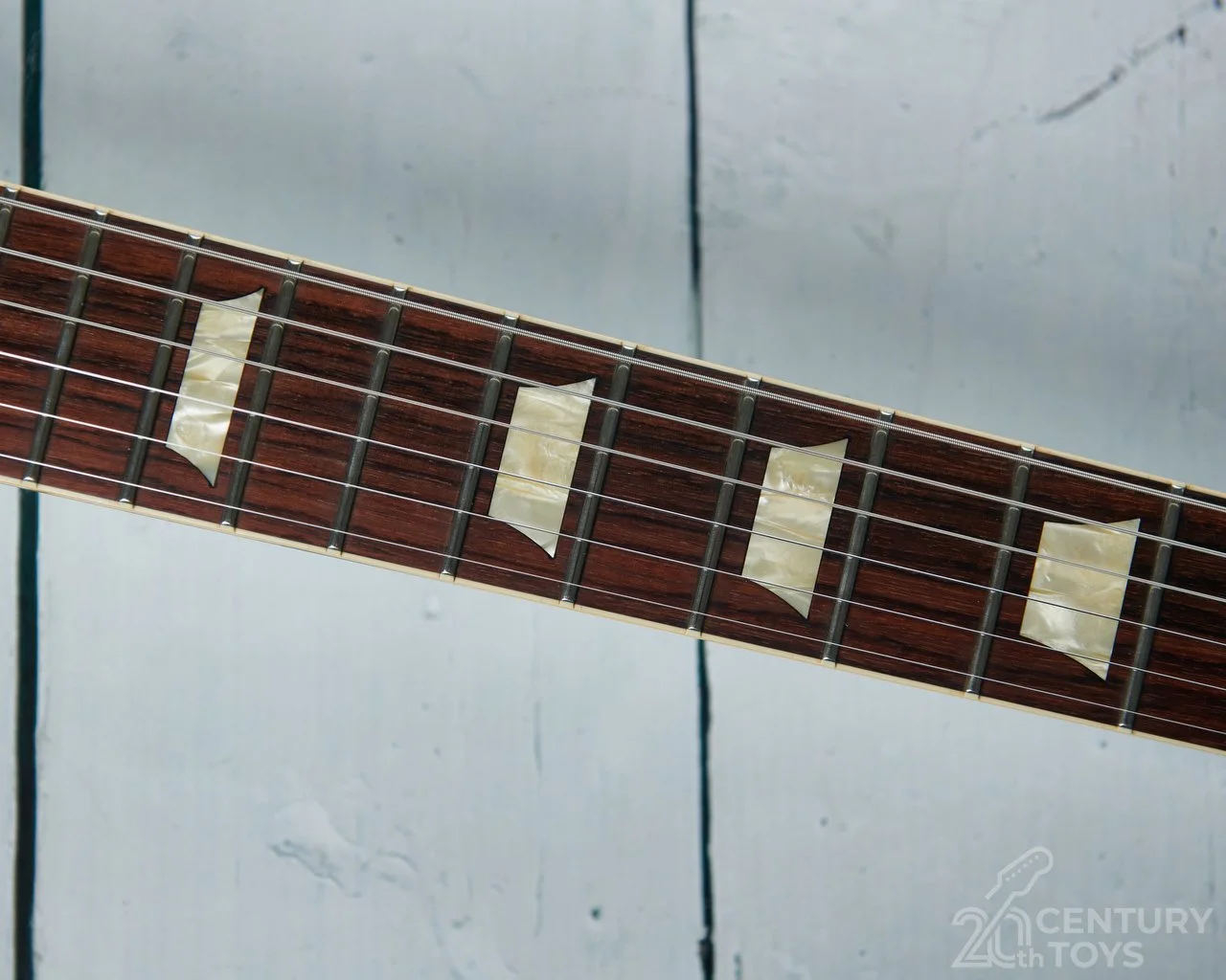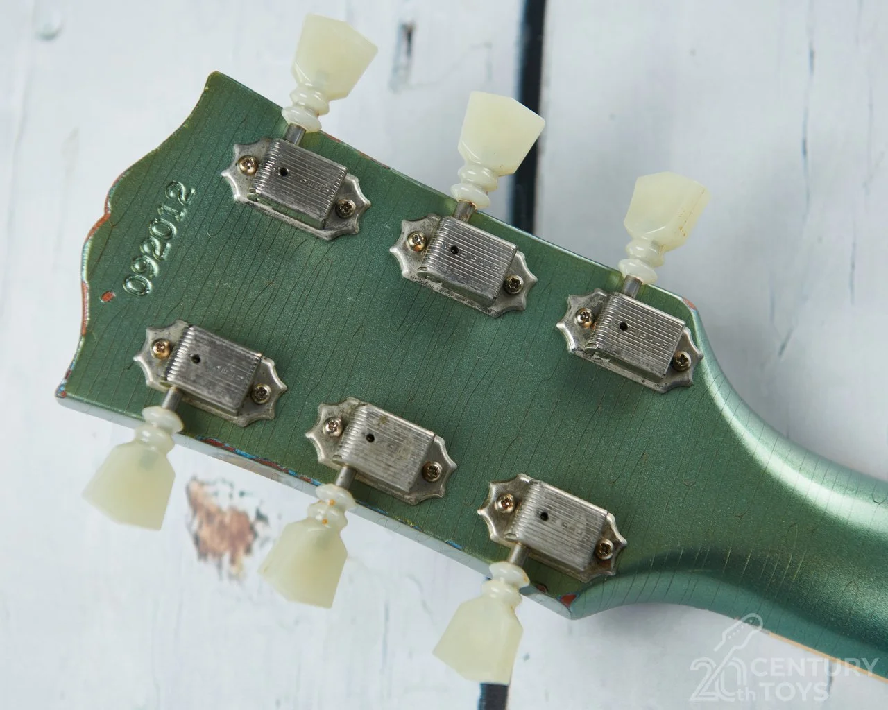 This limited run was originally available in VOS and aged finishes. This particular example has been aged by the in-house team at the Custom Shop to give it the look of a well played but generally looked after rare vintage custom colour example. The ageing has been done to a high standard and is authentic looking. Some attractive lacquer checking along with a few dings and nicks, arm wear, finish discolouration, wide bevelled pickguard and aged true historic hardware adds to the vintage vibe. It’s a guitar that definitely has the wow factor when the case is opened.